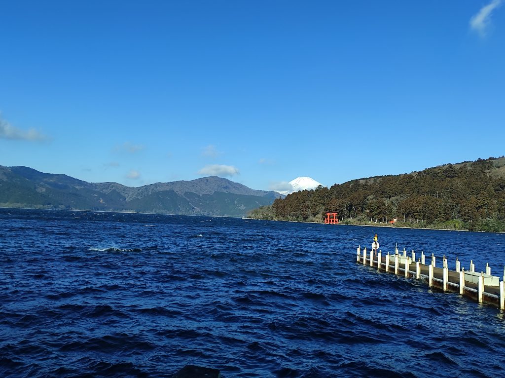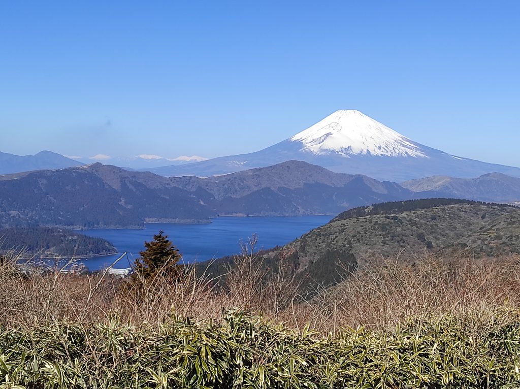 Wir haben uns am Samstag um 7:00h an einem Combini kurz vor der Autobahn getroffen. Natürlich war ich erst am falschen Combini, da es diese hier wie Sand am Meer gibt, aber egal. Dafür gibt es ja Handies… Dann ging es erst einmal für ca. 1 Stunde auf die Autobahn, wo wie immer erst mal wieder Stau war. Aber das ist hier mit den Motorrädern kein Problem, man schlängelt sich dann einfach durch den Verkehr durch. Die Japaner machen im Gegensatz zu den Deutschen auch bereitwillig Platz. Der erste Stopp war wie bei der letzten Tour im Dezember Hakone. Dieses Mal war das Wetter aber viel besser und der Fuji-san strahlte in seiner ganzen Pracht, da er jetzt auch schön mit Schnee bedeckt war.