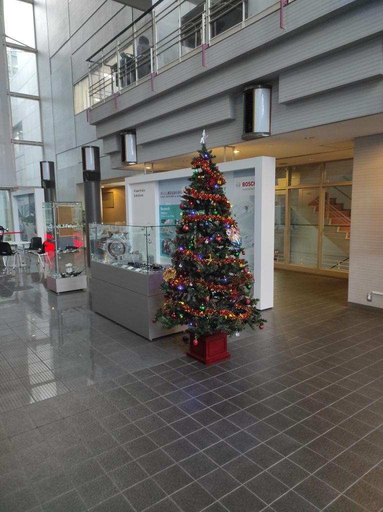 Man sieht es schon an der Beleuchtung in den obigen Bildern. Es geht so langsam Richtung Weihnachten, was hier in Japan eigentlich nicht gefeiert wird, da nur ca. 1% der Japaner Christen sind und echte Weihnachtsbäume gibt es schon gar nicht. Aber zumindest bei Bosch gibt es einen künstlichen Weihnachtsbaum.